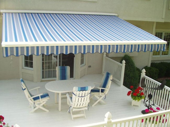 - Bạt che sân thượng được lắp lên tường, hoặc phủ mái nhà bằng bản mã ở hai đầu trục cuốn.